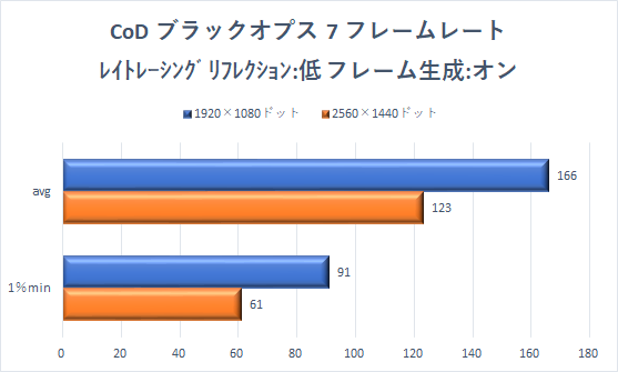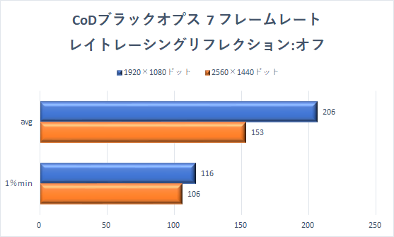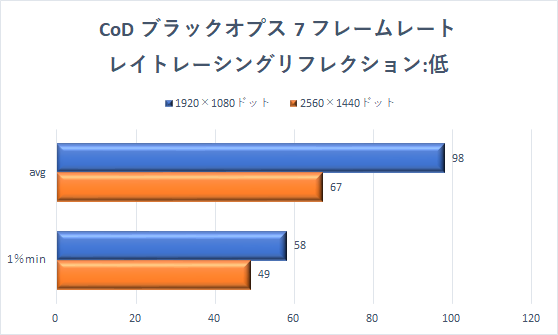 続いては、「コール オブ デューティ ブラックオプス 7」を確認していこう。「レイトレーシングリフレクション」の設定がかなり重たい。同じグラフィック品質でも、「低」で効かせるだけで、フレームレートは2分の1程度にまで下がってしまう。