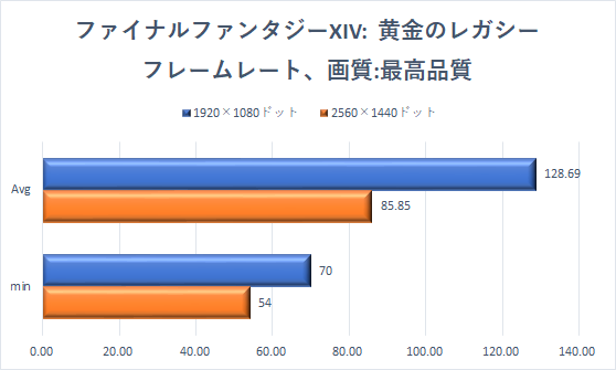 続けて国産MMORPGの金字塔「ファイナルファンタジーXIV: 黄金のレガシー」のベンチマークテストを実行した。1920×1080ドット、2560×1440ドット解像度、画質「最高品質」のスコアとフレームレートをみていこう。