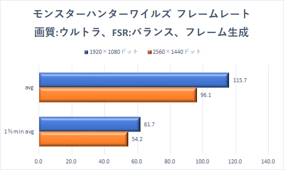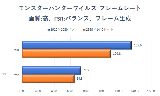 解像度2560×1440ドットでも、十分なフレームレートだ。さらにフレーム生成を効かせることで、リフレッシュレート144Hzの張り付きプレイも狙える。プレイスタイルに合わせてゲームを楽しめる。