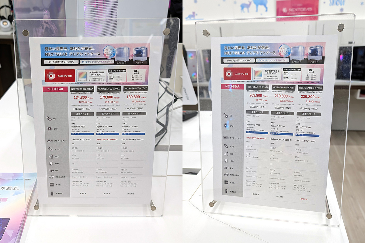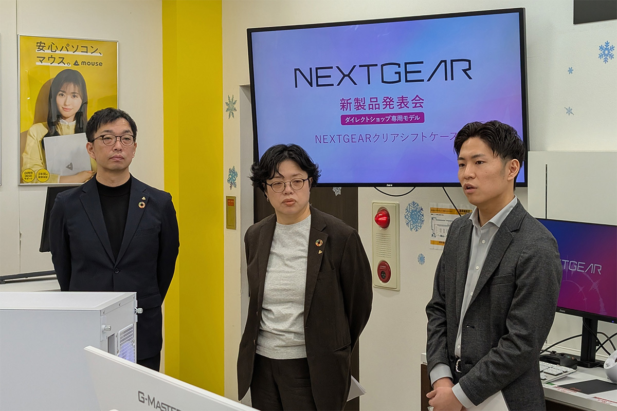 実機は全国8店舗のダイレクトショップで展示され、モードの切り替えなどを試すことが可能。製品はショップ内でBTOで注文することになる。すでに報道されているとおりに(「マウスコンピューター、1月以降に“価格変更” パーツ不足で製品の販売停止も」)、パーツ不足にともなう駆け込み需要でNEXTGEARブランド全般で売り切れが目立つ状態になっているが、NEXTGEAR クリアシフトケースは12月17日時点では各モデルの注文ができる(製品の発送は2026年1月半ばを予定)。というわけで、人とはちょっと違うゲーミングPCを欲しい人は、店舗でチェックしての早めの注文が良さそうだ。