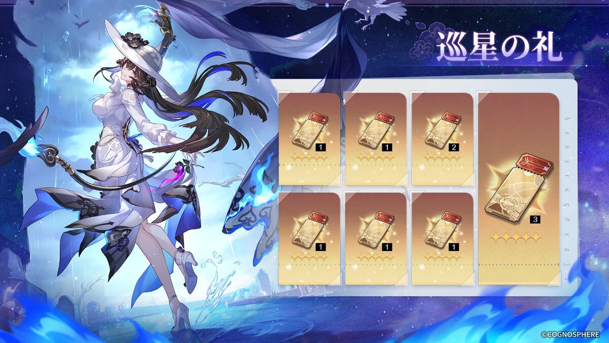 ログインボーナスイベント「巡星の礼」を開催中。ゲームにログインすることで、最大10連分の「星軌専用チケット」がもらえる。えひとも参加しよう。