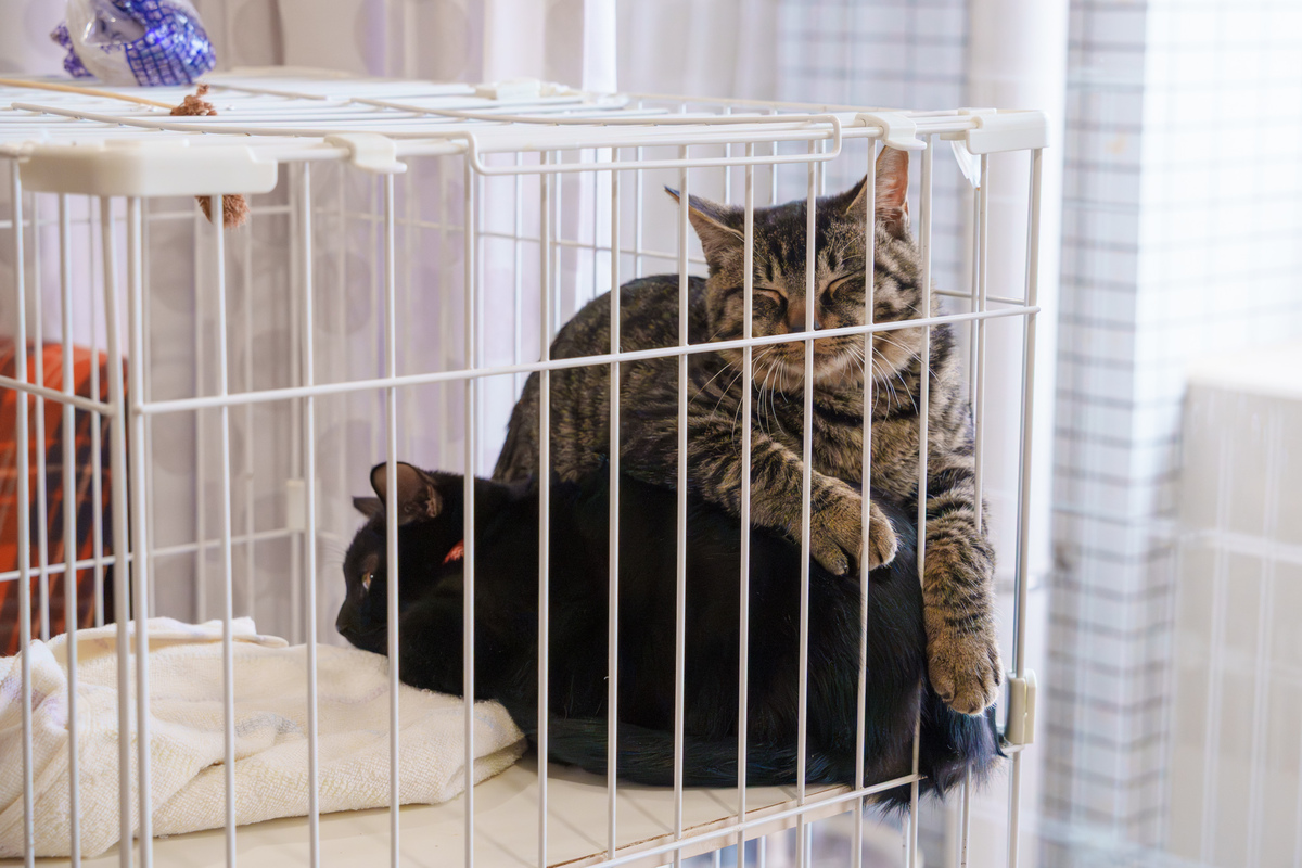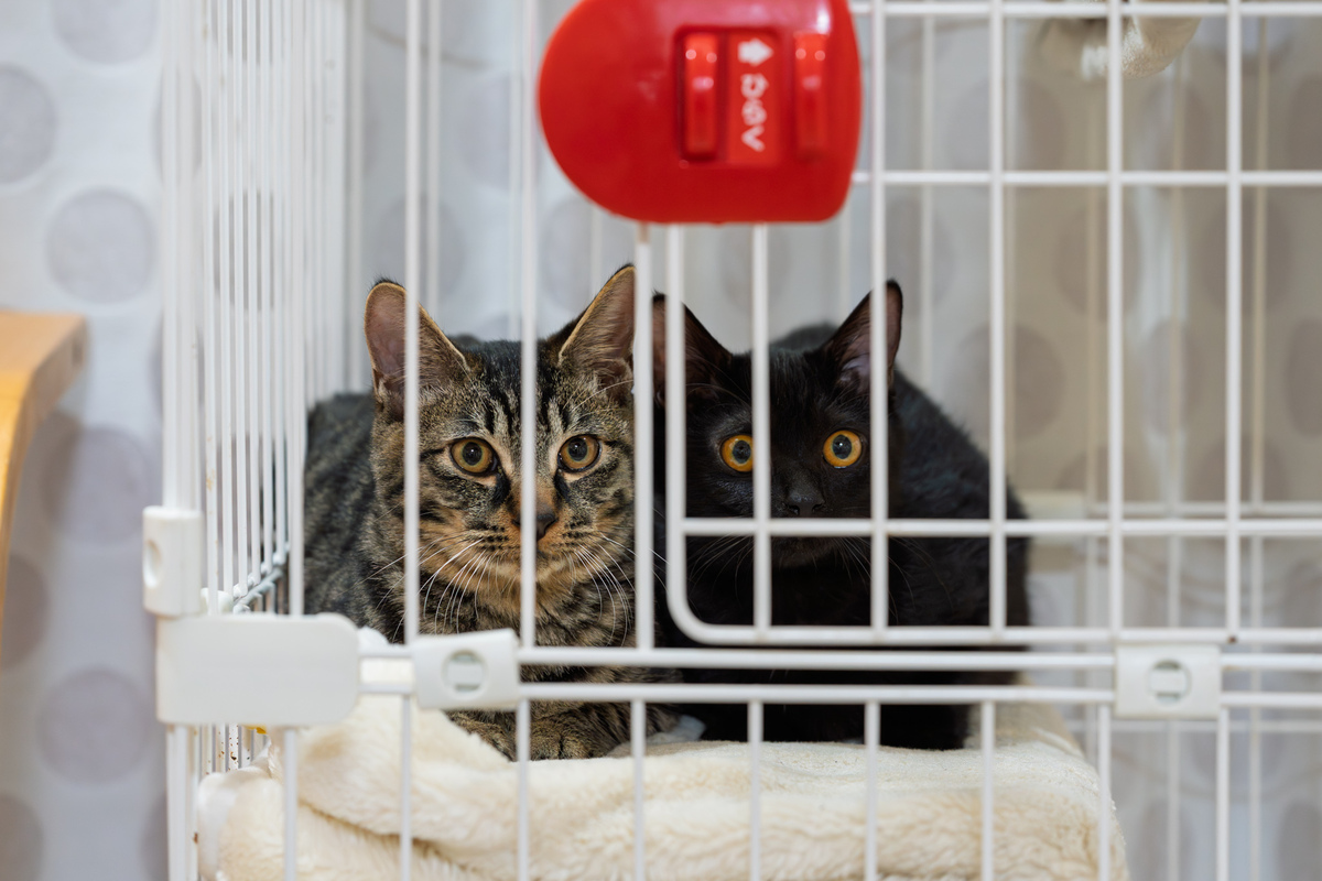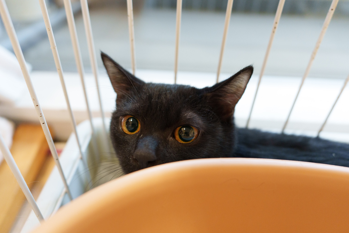 黒猫の方はケージ内に設置したトイレの裏でうずくまってしまったのだ……。