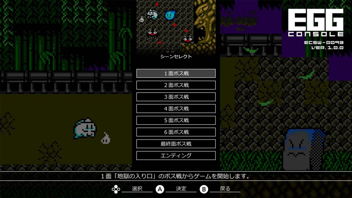 『EGGコンソール 幽霊君 MSX2』は、アプリケーション標準で用意しているゲーム内の各シーンやエンディングをすぐに楽しめる「シーンセレクト」モードに対応している。