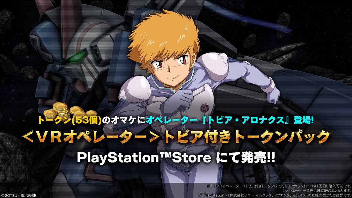 「クロスボーン・ガンダムX3」の実装とあわせて、「<VRオペレーター>トビア付きトークンパック」を発売中。こちらはトークン53個にオペレーターが付いてくるお得なセットとなっている。