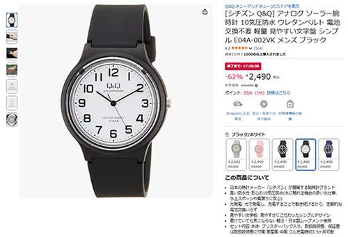 シチズンの人気ブランド「Q&Q」のアナログソーラー腕時計(E04A-002VK)が、Amazonタイムセールに登場しました。参考価格6,600円から62%オフの2,490円で販売中です。