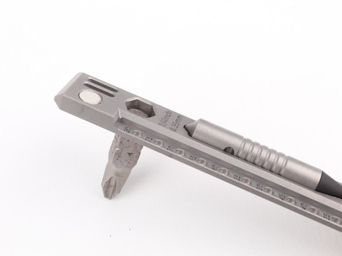 このほか、水平器や栓抜き、ソケットドライバー機能もあります。水平器はかなり小さいので、そこまであてになりませんが、目安としては十分です。なお、ドライバービットは付属していないので、ドライバーとして使いたいときは、別途ビットを自分で用意する必要があります。といっても、一般的な6.35mmなので、簡単に用意できるでしょう。