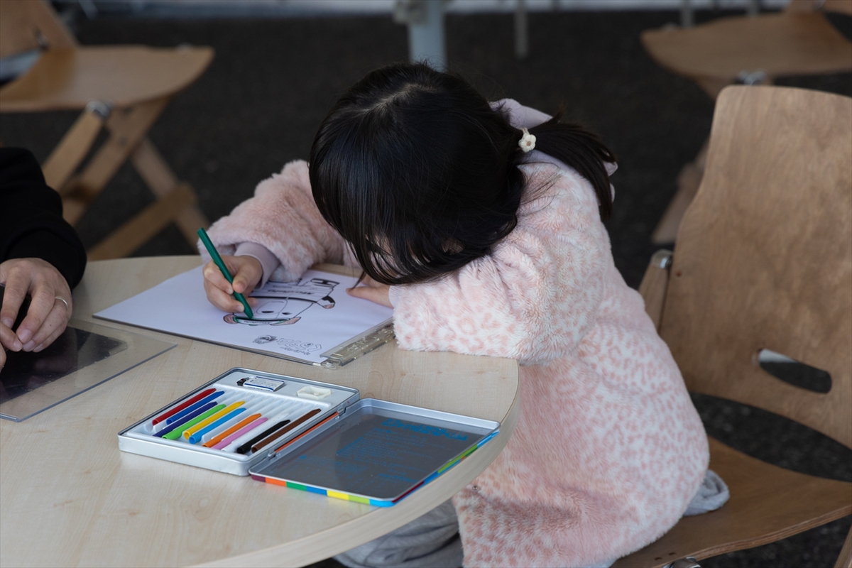 子供向けコンテンツも数多く用意。まずは塗り絵。ホンダアクセスのキャラクターを一生懸命塗る姿が途切れることはありませんでした。