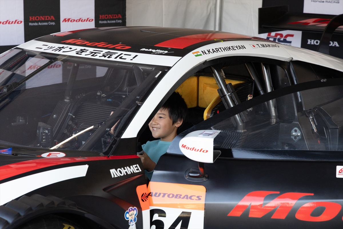 そしてレーシングカーの試座体験も。こちらは大人も乗ることができました。