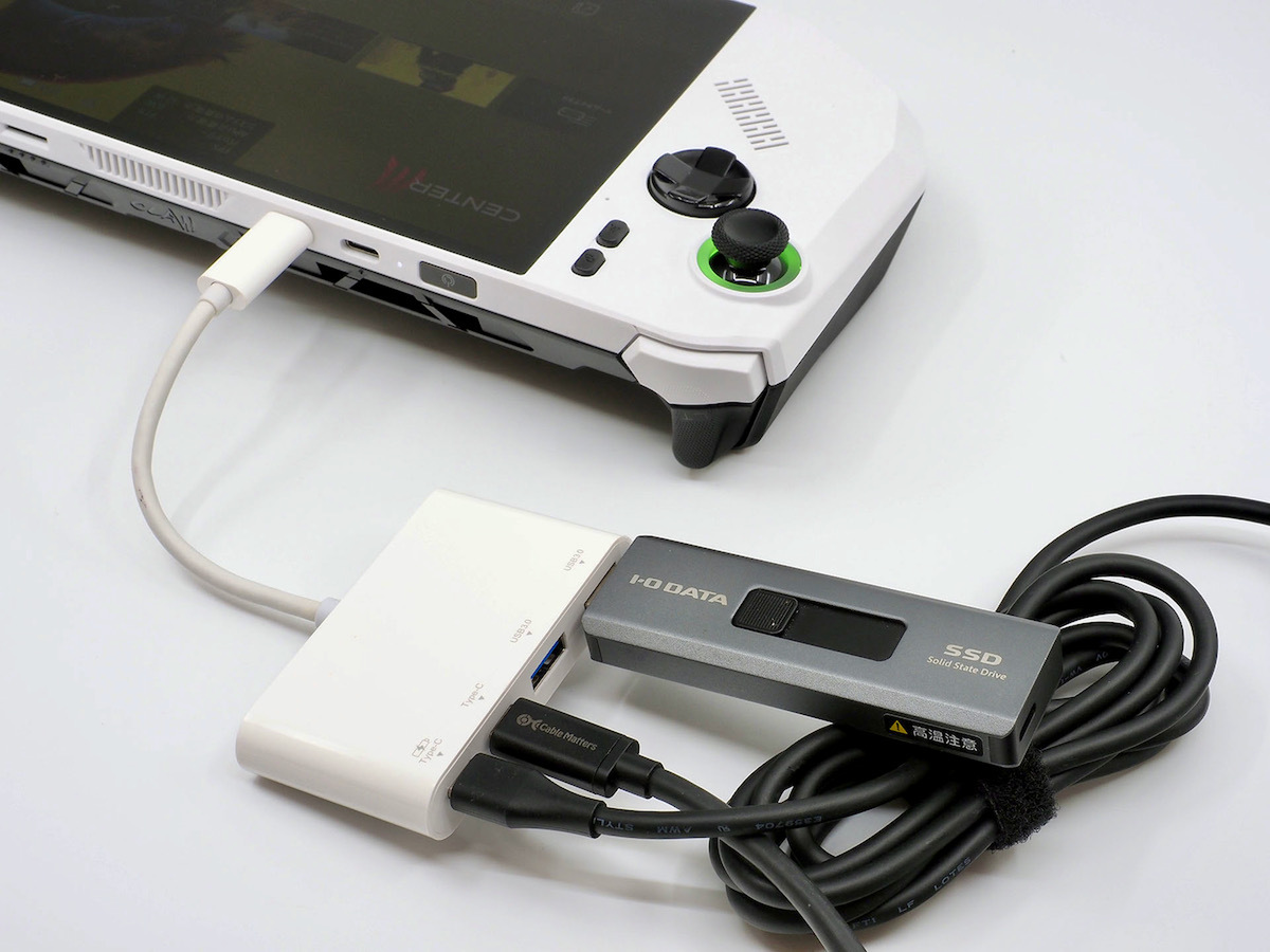 もうひとつUSB機器を接続したいといった時のことを考えよう。USB PD充電と映像出力で2つのポートはすでに埋まっている。USBポートを増やす必要がある。ただし、ならシンプルにUSBハブでよいのかというとそうではない。USBハブはポート数を増やせるものの、USB PDや映像出力に対応していない。これらに対応した「USBドック」がないと、同時使用ができない点に注意しよう。まあ、USBドックを使えばケーブル1本着脱するだけで済むので単純に利便性が向上する。Claw A8 BZ2EMユーザーは備えておいて損はない。