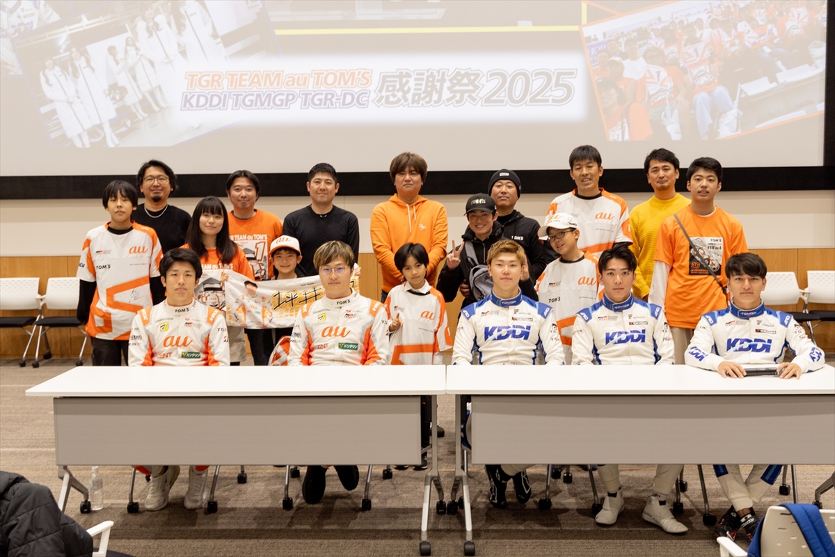 20日、KDDI多摩センタービル「LINK FOREST」にて、KDDIがサポートするレーシングチームのファン感謝祭「TGR TEAM au TOM'S / KDDI TGMGP TGR-DC感謝祭 2025」が行なわれました。国内トップカテゴリーであるSUPER GTとSUPER FORMULAの両方がそろったファン感謝イベントの様子を紹介します。