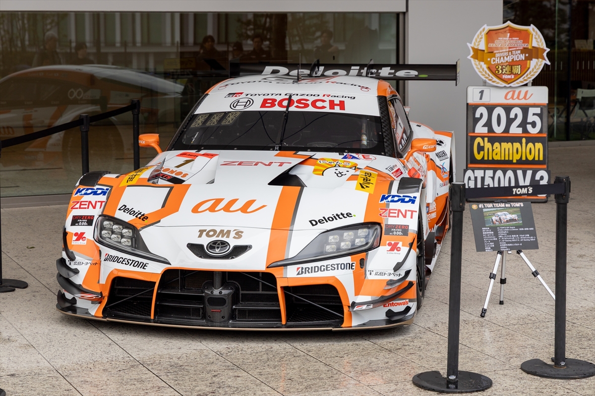 2025年シーズンを振り返ると、SUPER GTに参戦するTGR TEAM au TOM'Sは史上初となるシリーズチャンピオン3連覇を達成。