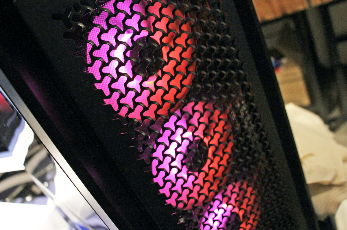 ZEFT Z59Jは、メッシュパネルから顔を覗かせる、光る3つの大型ファンが特徴的。見た目のよさと冷却性能を両立しています。