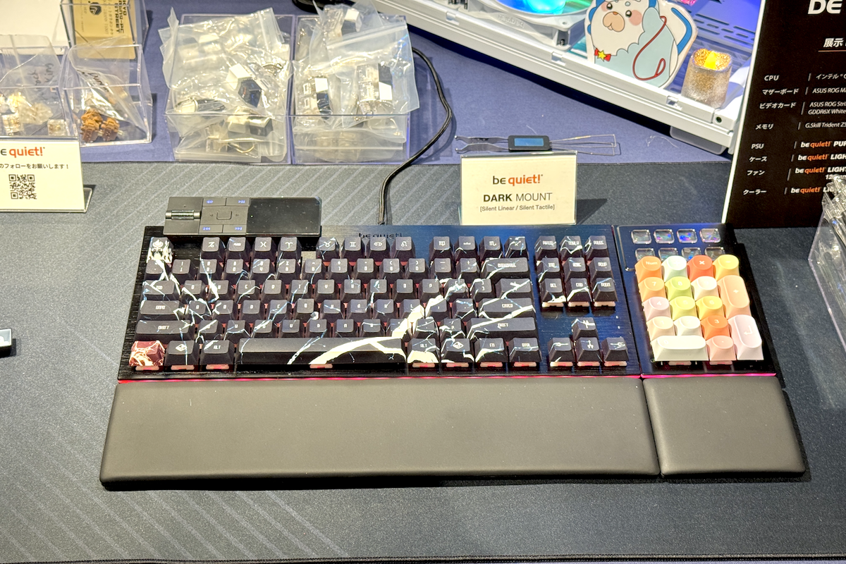 スタッフの説明を聞きながら、キートップの素材や形状、スイッチの違いを比べていくと、「なぜこのキーボードはこういう打鍵感なのか」が自然と理解できていく……。単なるスペック表では伝わらない部分を、触覚と視覚で確かめられるbe quiet!のブースでした。