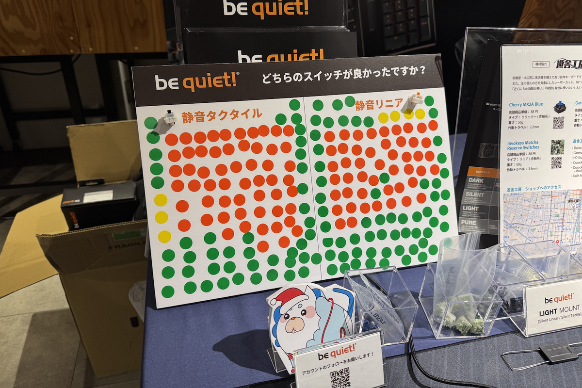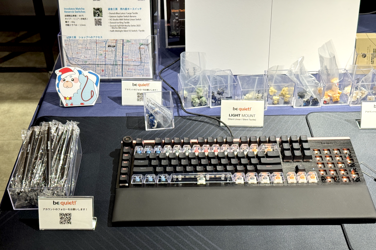 be quiet!のブースは、スペックの比較だけではなく“直接”体験することもキーボード選びで重要な点であることを実感できるとともに、キーボードのカスタマイズの楽しみを来場者に伝える、素敵な場所だったのです。