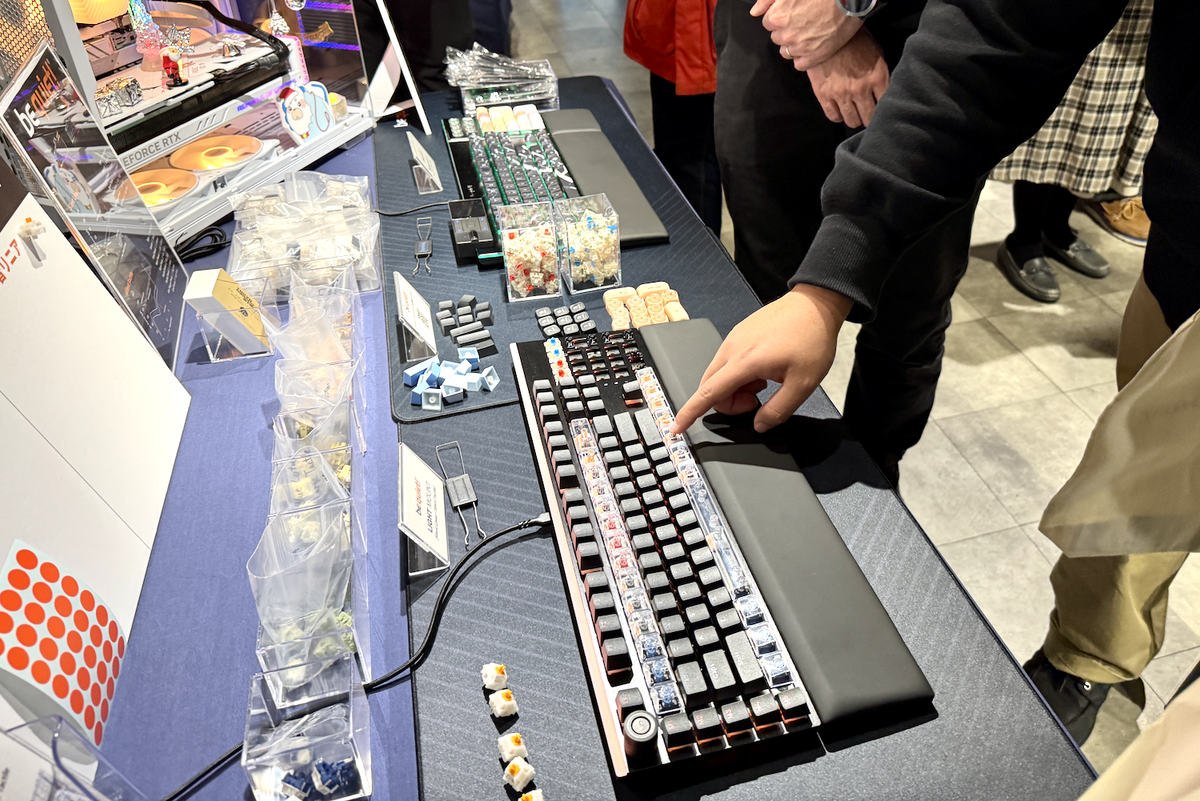 やはり、“直接”触って試せるということもあり、来場者の皆さんが楽しそうにキーボードを叩いていた印象。単にキーボードを試し打ちできるだけではなく、実際にキートップを外して中の構造を確認できるのもポイント。