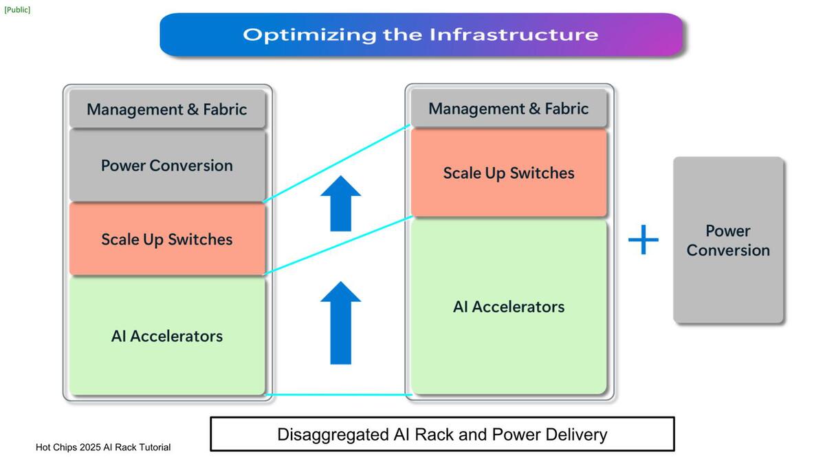 800V→48Vの変換に要する電源部の体積がより大きくなることに加え、BBU(Battery Backup Unit:UPSのような電源断時に電力を供給するバッテリー)やCBU(Capacitor Bank Unit:大容量コンデンサーを利用した、瞬電のようなわずかな時間の電源断に対応するための装置)などもより大容量が必要になる関係で、もう別のラックに収めないと間に合わなくなってきた