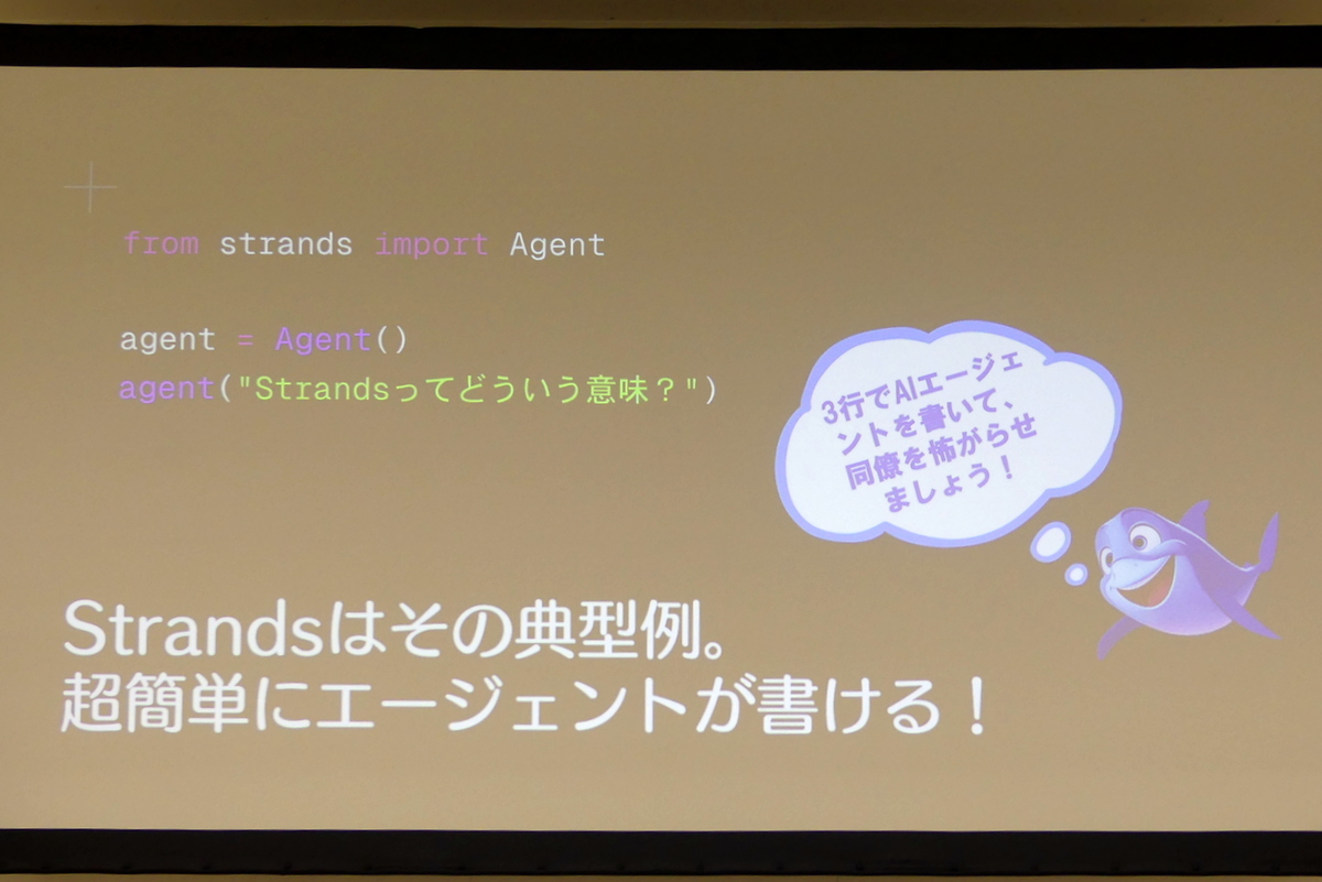 このSTRANDS AGENTS SDKはまさにこの典型例で、3行のコードでAIエージェントを書けてしまう。先日のAWS re:Invent 2025の発表ではSTRANDS AGENTS SDKが拡張され、Pythonに加え、TypeScriptもサポートした(関連記事:教えて、ほめて、注意して AWSが考える「本番に強いAIエージェントの育て方」)。