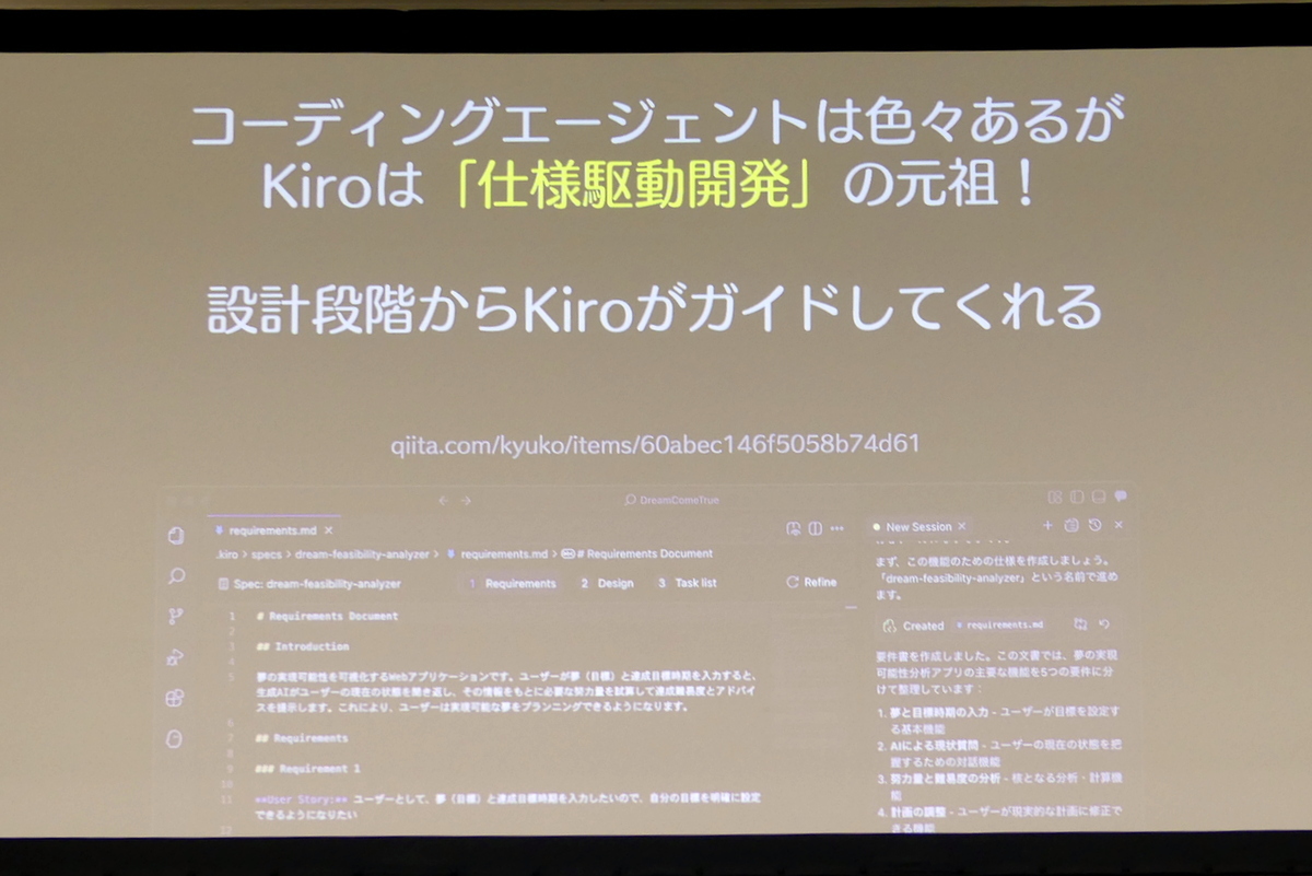 数年前までインフラエンジニアで、プログラミング初心者だった御田さんも、いまやAIエージェントを本格的に作れるようになった。そんなAIエージェントの開発をもっと身近にするのが、「いまや原宿のJKたちを騒がせているKiroちゃん」(御田さん)だ。