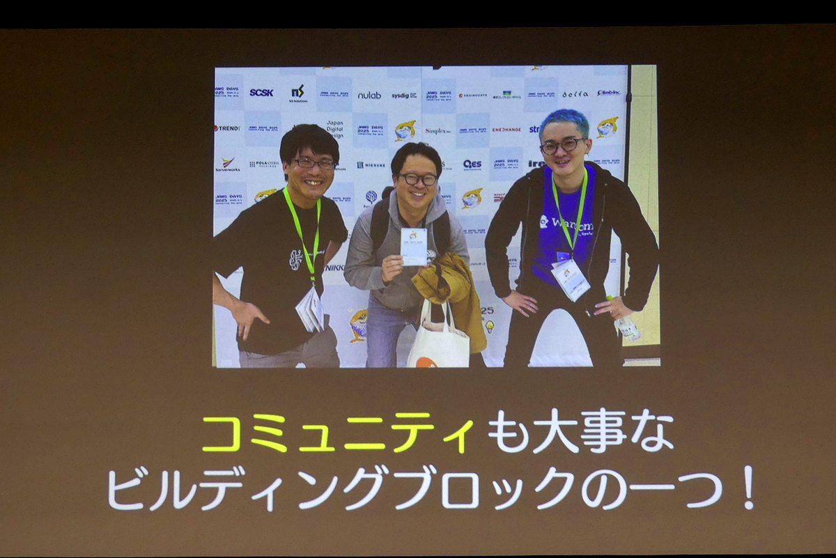 一方で、開発で困ったことを聞きたかったり、作ったときのノウハウを共有するときに重要なのは、今日のイベントの中心であるコミュニティ。「私はコミュニティはビルディングブロックの一部だと思っています。このコミュニティの勢いが間違いなく高いのがAWS。AWSを使っていれば、学ぶのも、発信するのもめちゃくちゃ楽しいから、仕事がんばろってなる。コミュニティがあるから私はAWSが好きなんだと思います」と御田さんはまとめる。