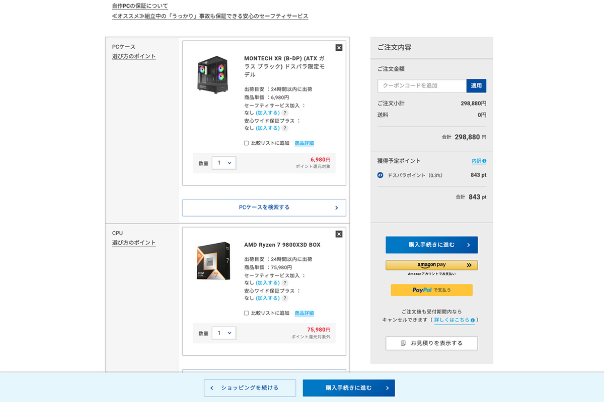 ASRockのドスパラ限定モデルや、ドスパラセレクトブランドなど、全国のドスパラの店頭はもちろん、通販でも購入できる自作PC一式のレシピとなっている。