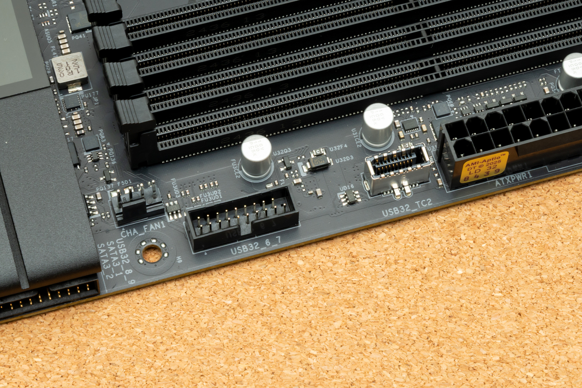 PCケースフロント用のUSBヘッダーピンも豊富。計5ポートを接続できる