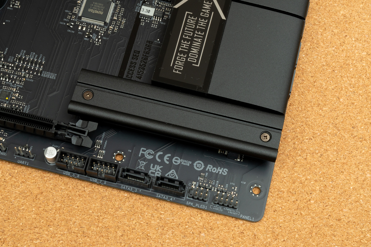 PCIe4.0×4動作に対応する「ハイパー M.2 ソケット」にも、板状のM.2ヒートシンクを装備。スムーズに増設できる