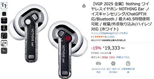 Nothing Earは、デザイン性と機能性の両立を特徴としたワイヤレスイヤホンで、Amazonでも注目を集めているモデルです。