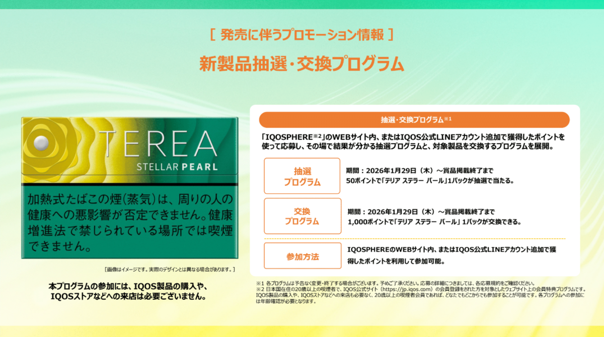 IQOSPHEREでは、1月29日からテリア ステラー パールの交換・抽選プログラムも開始される。詳細は、IQOSPHEREのサイトでチェックしてほしい。
