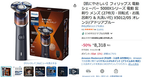 フィリップスの電動シェーバー「5000Xシリーズ(X5012/05)」が、Amazonセールに登場しました。参考価格16,500円から50%オフの8,318円で販売中です。