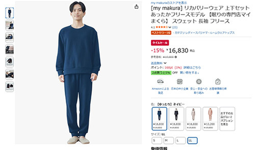 創業120年の寝具メーカー「眠りの専門店マイまくら」が開発した「my makura リカバリーウェア 上下セット あったかフリースモデル」が、Amazonタイムセールに登場しました。参考価格19,800円から15%オフの16,830円で販売中です。