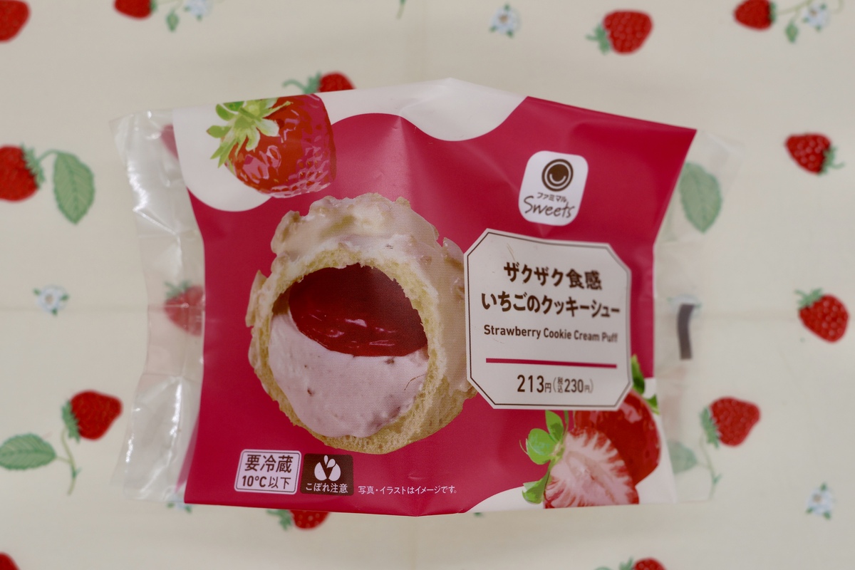 まずは「ザクザク食感 いちごのクッキーシュー」(230円)。