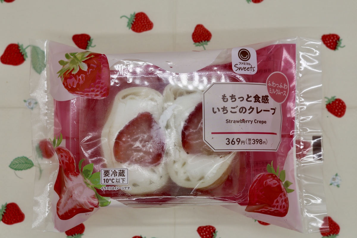 こちらもオススメ。「もちっと食感いちごのクレープ」(398円)