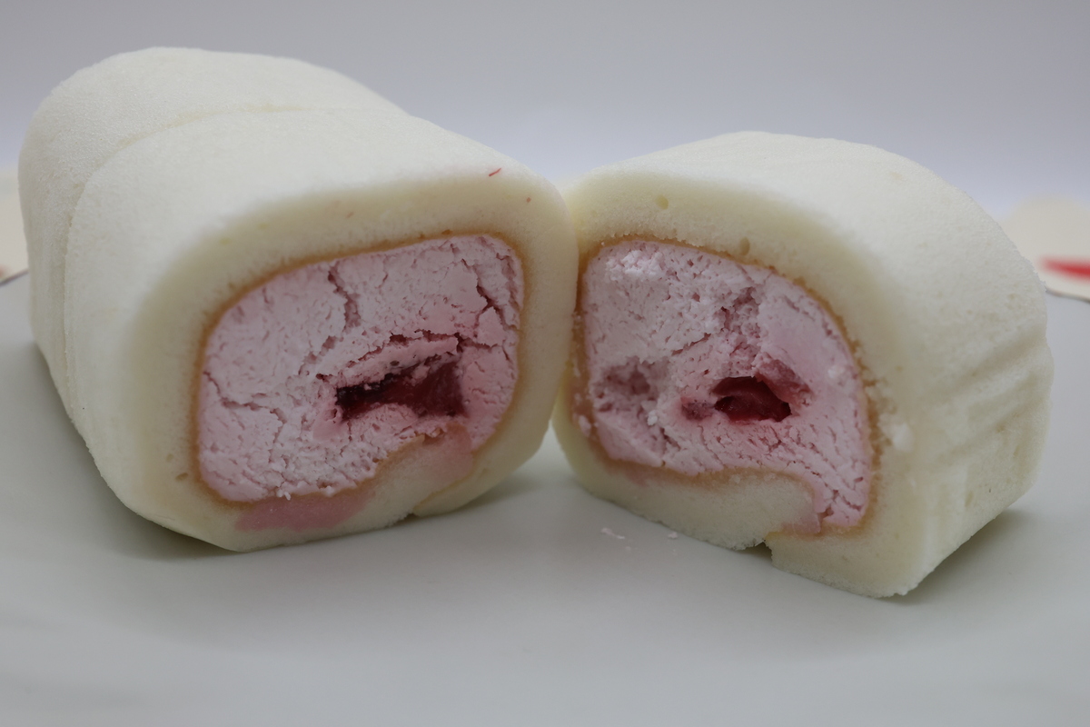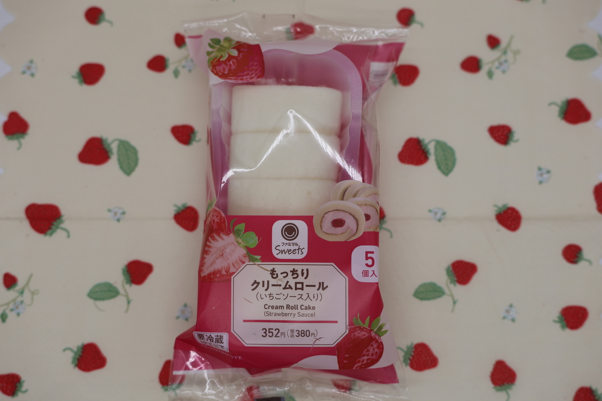 続いて「もっちりクリームロール(いちごソース入り)」(380円)。