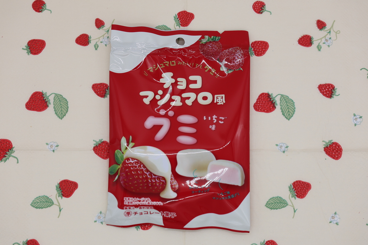 こちらは「チョコマシュマロ風グミ いちご味」(250円)。