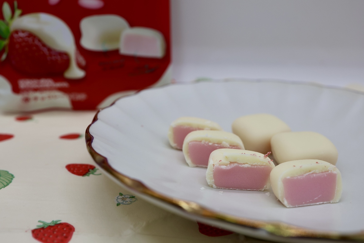 「ストロベリーチョコホワイト」(378円)は、甘酸っぱいいちごをコクのあるホワイトチョコで包んだお菓子。