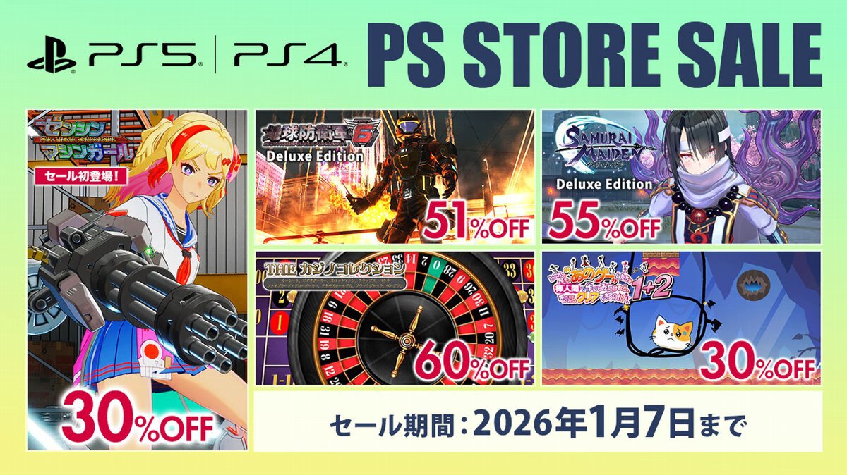 ディースリー・パブリッシャーは12月22日、PlayStation 5&PlayStation 4ダウンロードゲームや追加コンテンツがお買い得なPlayStation Storeのセール「BIG WINTER SALE」に提供しているタイトルラインアップを公開。セール期間は、2026年1月7日まで。