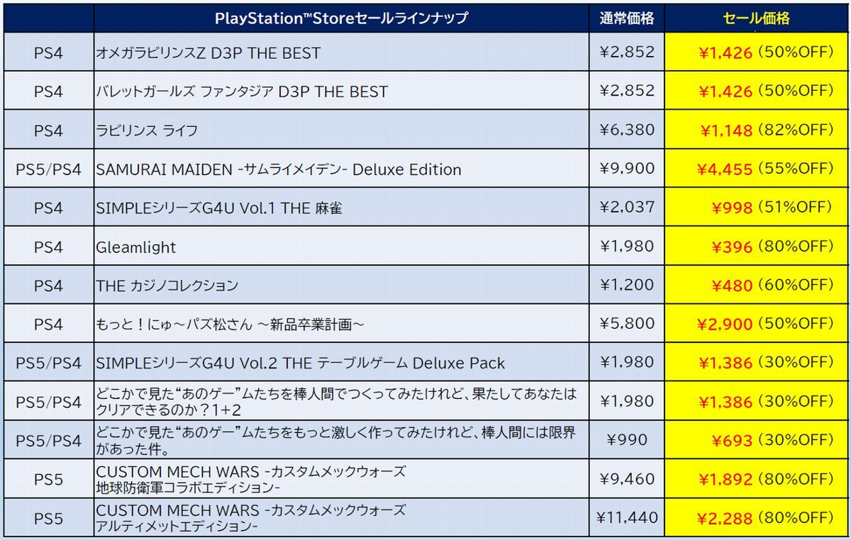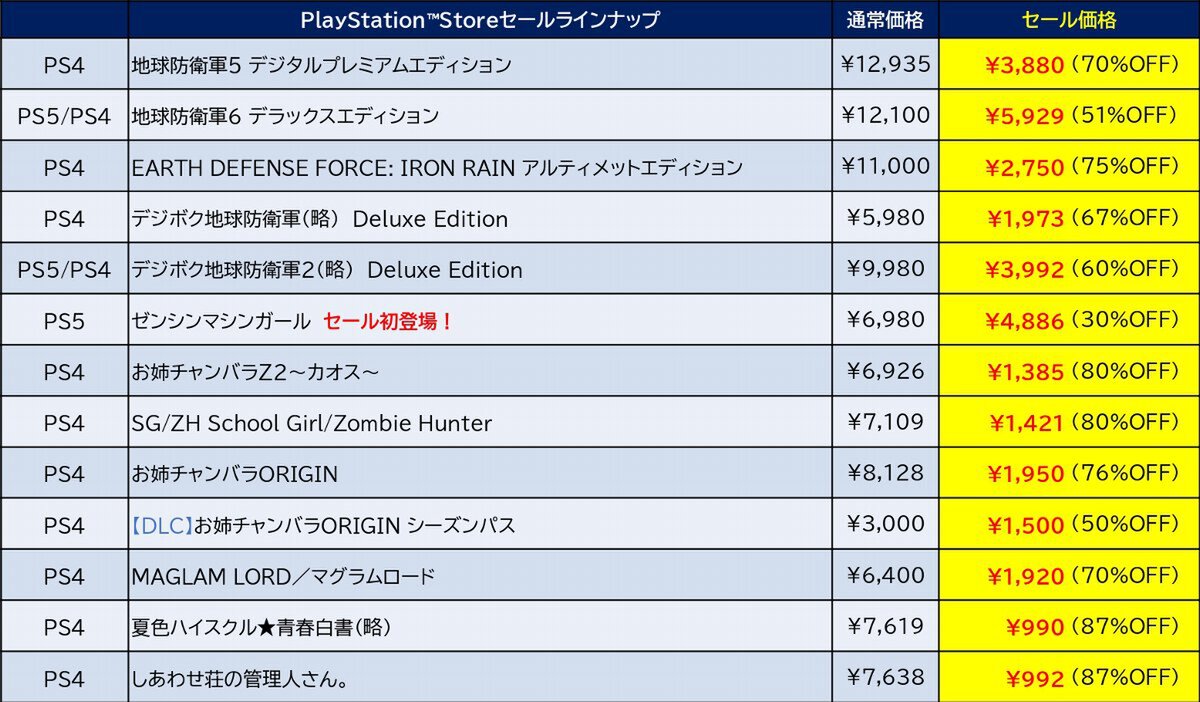 今回のセールでは、噂のサイボーグJKがブラック企業をぶっ潰すアクションTPS『ゼンシンマシンガール』ゲーム本編が初登場。さらに『地球防衛軍6』『サムライメイデン』のDLC全部入りデラックスエディションも大幅割引になっている。