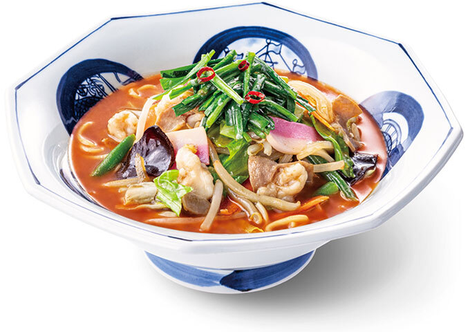 また同日、「牛もつちゃんぽん」を103店舗限定で発売します。旨味と食感が特徴という牛もつを使用し、スープは醤油、チゲの2種類から選べます。