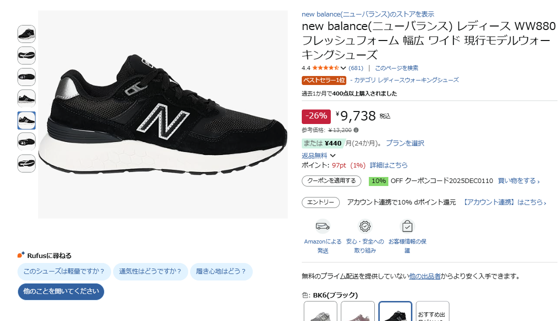 毎日の「歩く」を快適にしてくれる一足を探している人におすすめのニューバランスのWW880が26%オフの9,738円でAmazonのセールに登場!