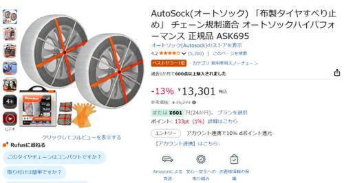 【Amazonセール】布製タイヤチェーン「AutoSock(オートソック)ASK695」をチェック