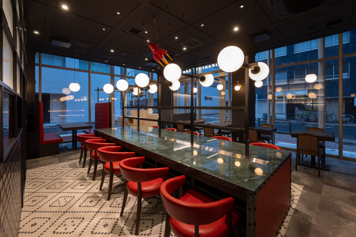 新店舗では、従来の品質や提供メニューの価格はそのままに、店舗イメージを刷新。内装にこだわり、ひとり客からグループ、家族連れまで、ゆったりと食事を楽しめるモダンで開放的な空間を演出し、幅広いシーンでの来店を促します。