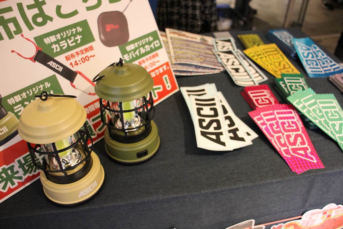 さらに来場者のみなさんには、イベントロゴ入りのランタン、ペットボトルホルダー付きカラビナ、充電式カイロといったノベルティを無料でお配りしました。ただ、来場してくださる方がとても多かったため、ノベルティの在庫がなくなってしまい、もらえなかった方も出てしまい……これは申し訳ない!