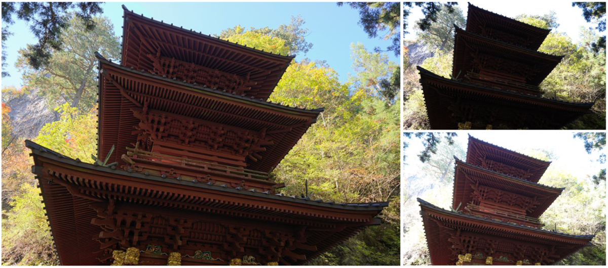 HDRをオンにしておけば、評価測光で暗部も明部もきちんと発色する。右はHDRオフで撮った-1と+1の写真で、これらを後から合成する手間なしで、左の写真が1発で手に入る。