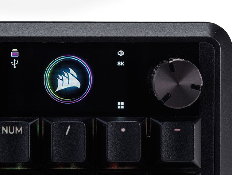 その上で、このキーボードがさらに面白いのは、特徴的すぎる機能が満載な点。個人的には特にキーボード上にカスタマイズ可能な液晶画面搭載をまずは推したいです。見た目だけでロマンありすぎません? もちろんゲーミングキーボードとしての機能もほぼフルスペックで、超高速ポーリングレート、SOCD(Simultaneous Opposing Cardinal Directions)などの主要ポイントはバッチリ押さえてくれています。