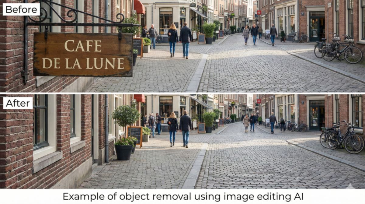 たとえば「人物を消す」「看板の文字を書き換える」「背景だけを差し替える」といった編集では、削除された部分の背後にあったはずの情報を補完したり、全体のトーンに違和感が出ないよう調整したりする必要がある。編集系AIは、こうした処理を人間の手作業に頼らず実行する。