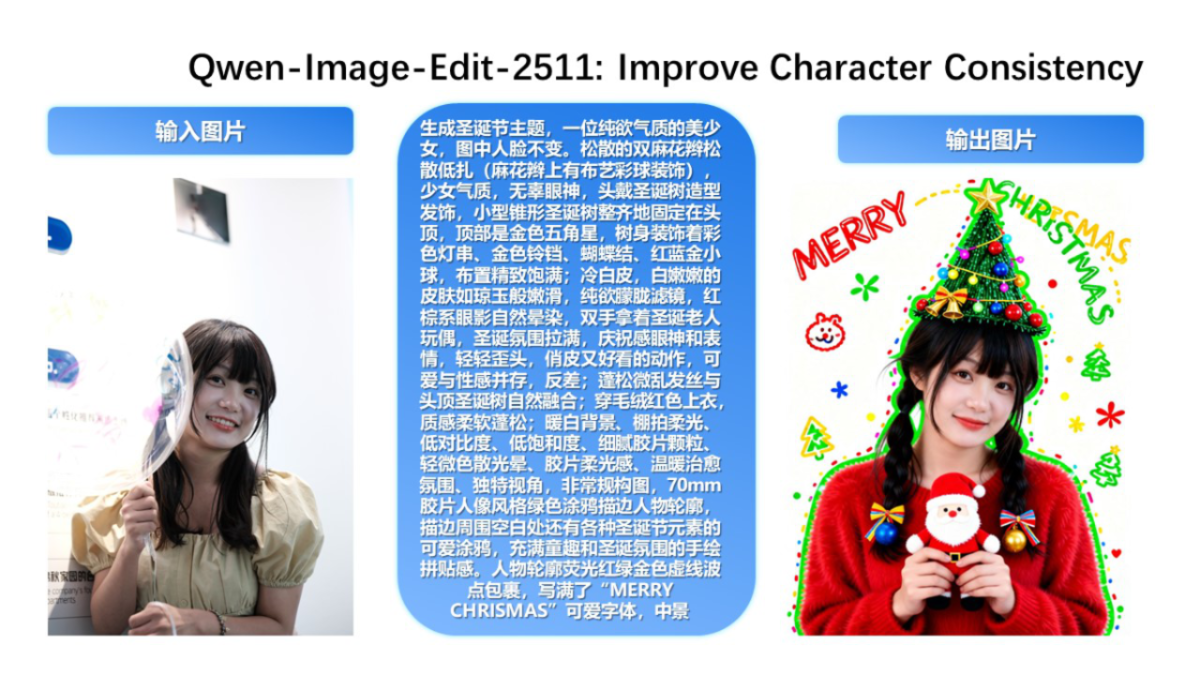 一方で最近は、こうした複数モデルの連携を必要とせず、単体で編集処理を完結できるモデルも登場してきた。Qwen-Image-Edit-2511がその一例だ。生成よりも編集を主眼に設計されており、修正前後の一貫性を保ちやすい。人物が写った画像でも、何度か修正を重ねた際に顔や体のバランスが崩れにくく、編集作業を続けやすい設計になっている。