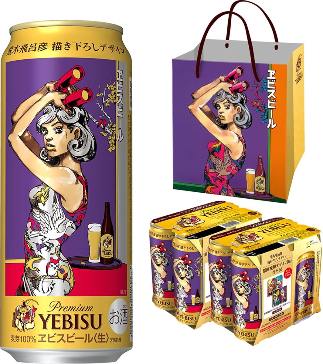 漫画家・荒木飛呂彦氏による描き下ろしデザイン缶の第2弾です。ヱビスビール美人画ポスターを現代的にアップデートし、130年以上続くヱビスブランドの伝統と、現在も進化を続ける世界観を表現したデザインとされています。