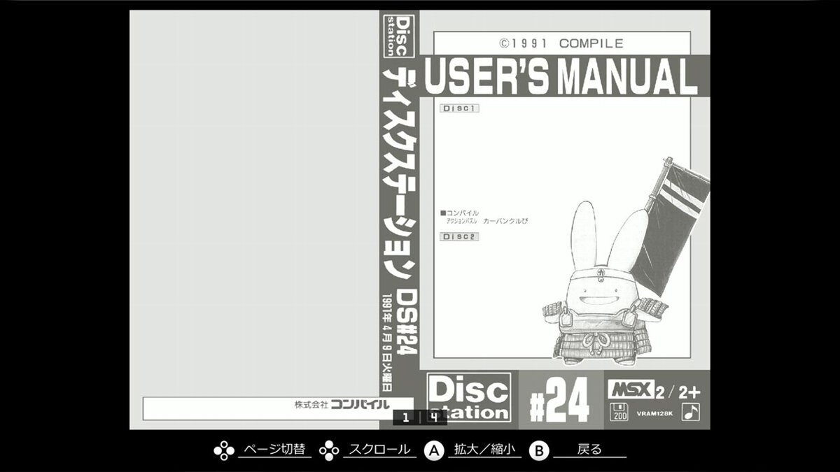 『EGGコンソール かーばんくるぴ MSX2』は、当時の貴重なマニュアルをいつでも閲覧できる「ギャラリー」モードに対応。