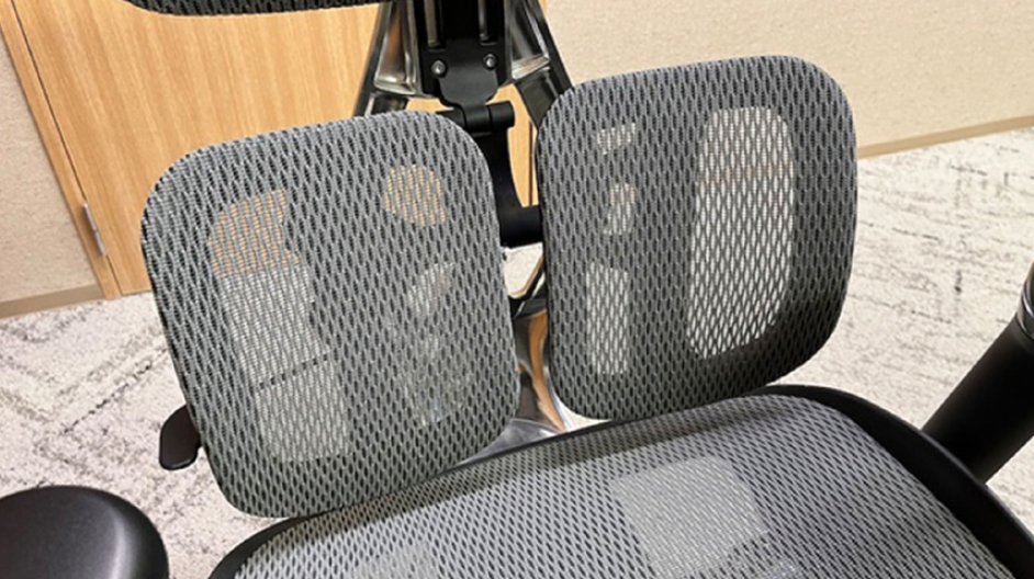 腰の部分にはガス圧で調整できるデュアルランバーサポートがあります。左右に分割されたクッションが腰を覆うように包み込んで、柔らかくフィットします。