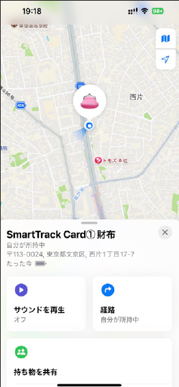 トラッカーの位置はもちろんアプリから追跡可能。しかも本家のAirTagではできない、スマホ側を鳴らす機能も搭載!